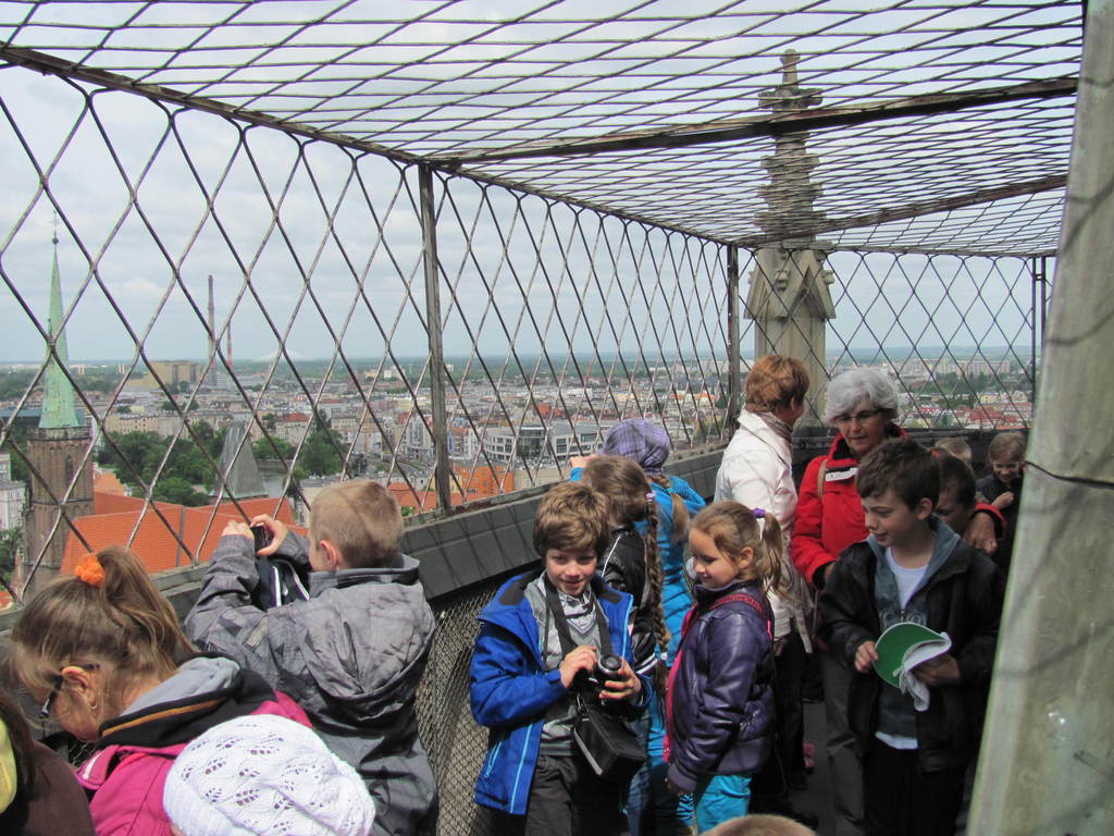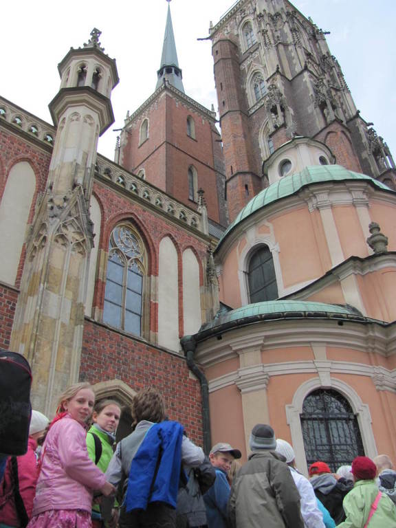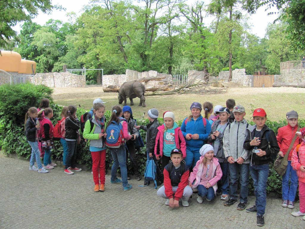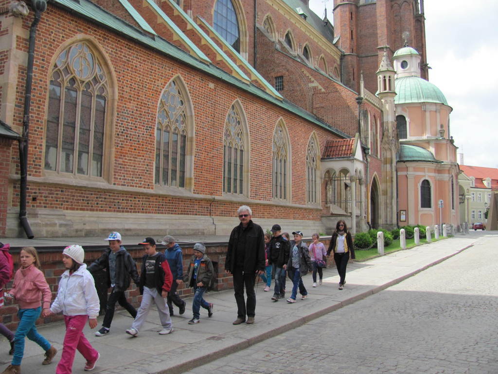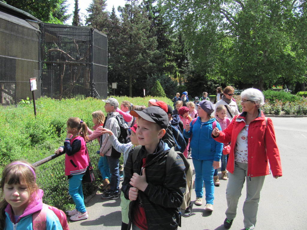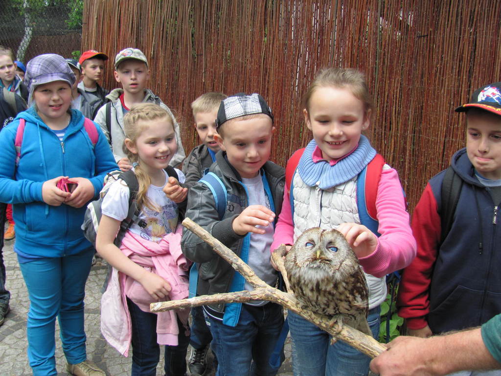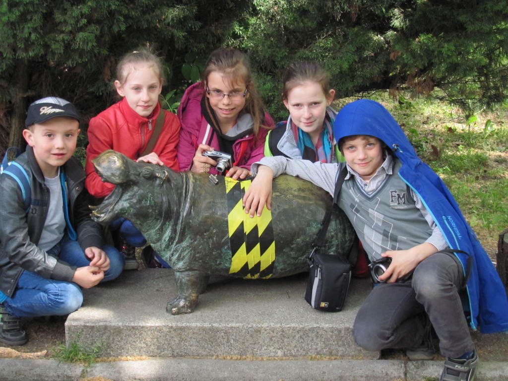 W czwartkowy, rześki poranek, 23 maja, klasy I-III ze swoimi wychowawcami udały się na wycieczkę. Po bezproblemowej podróży powitał nas dość pogodny Wrocław. Po zwiedzeniu lotniska zobaczyliśmy panoramę miasta wjeżdżając na taras widokowy wrocławskiej katedry. I wreszcie to, na co dzieci czekały najbardziej- zoo. Tu można było swobodnie pobiegać, pooglądać, pozachwycać się tymi zwierzętami, których nie spotykamy na co dzień- widzieliśmy lwy, słonie, antylopy, hipopotamy i wiele, wiele innych. W słońcu odbyliśmy rejs statkiem "Goplana" po Odrze, zobaczyliśmy pokaz fontann przy muzyce. No i nie mogło zabraknąć posiłku w Mc Donaldzie. Zmęczeni, ale pełni wrażeń szczęśliwie wróciliśmy do domu.