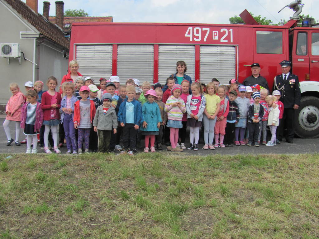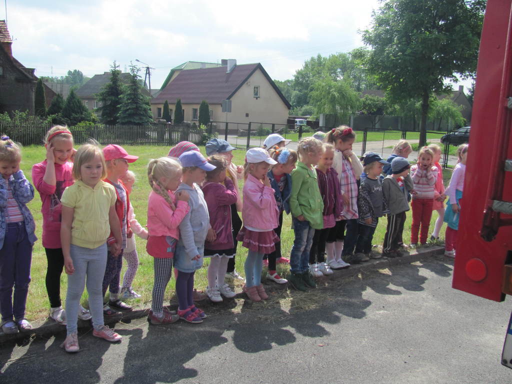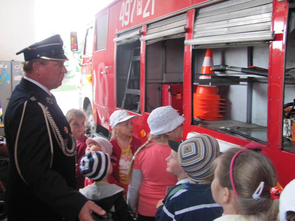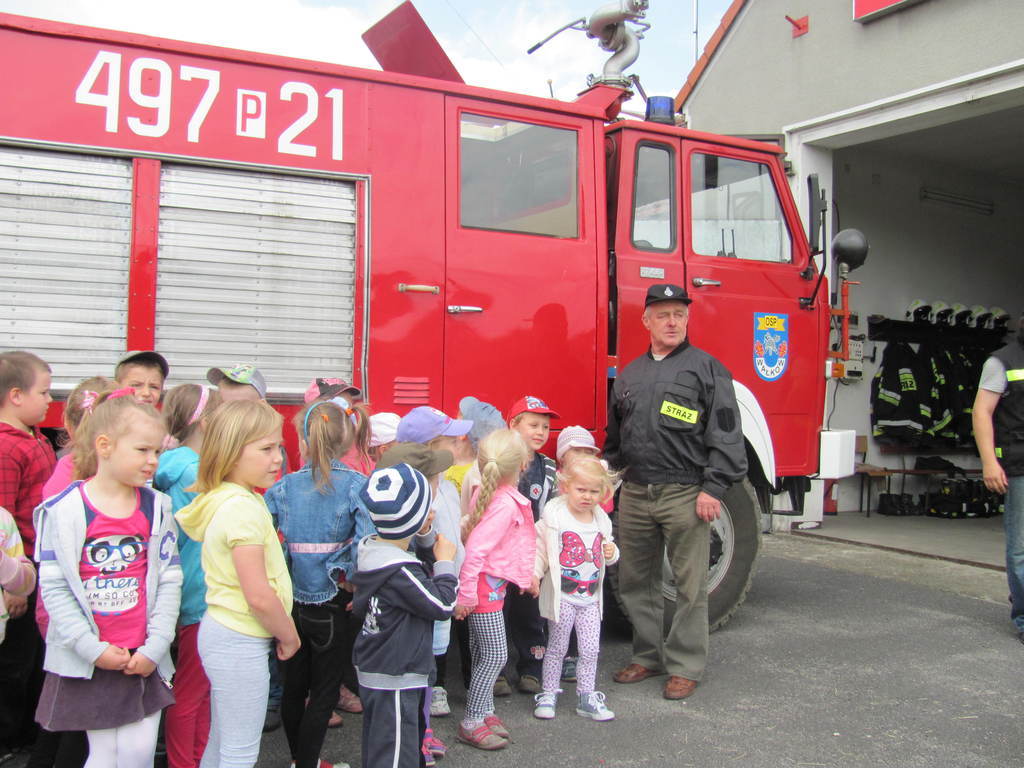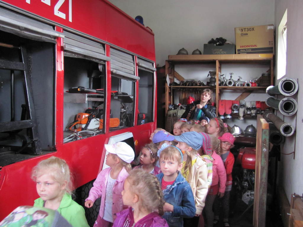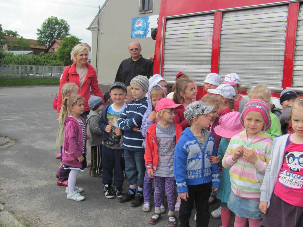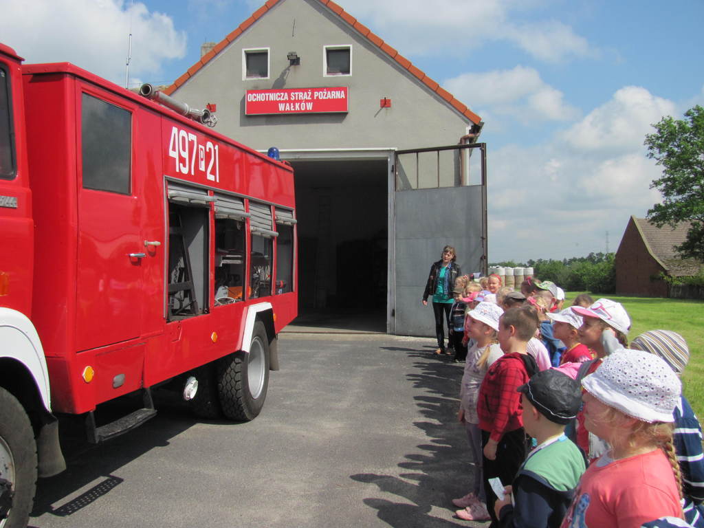 29 maja br przedszkolaki wybrały się na wycieczkę do Ochotniczej Straży Pożarnej w Wałkowie. Podczas spotkania dzieci wysłuchały mnóstwo ciekawostek o trudnej i niebezpiecznej pracy strażaka. Dowiedziały się również, w jakich okolicznościach można wezwać straż pożarną oraz utrwaliły numer alarmowy-998. Zaprezentowane zostały stroje strażackie i hełmy. Ogromny entuzjazm wzbudził samochód strażacki, do którego przedszkolaki mogły wsiąść, przyjrzeć się wyposażeniu, a na dodatek dla wszystkich dzieci była zorganizowana przejażdżka. Dodatkową atrakcją była dla przedszkolaków możliwość usłyszenia sygnałów, których używają strażacy, a także pokaz użycia sprzętu gaśniczego.