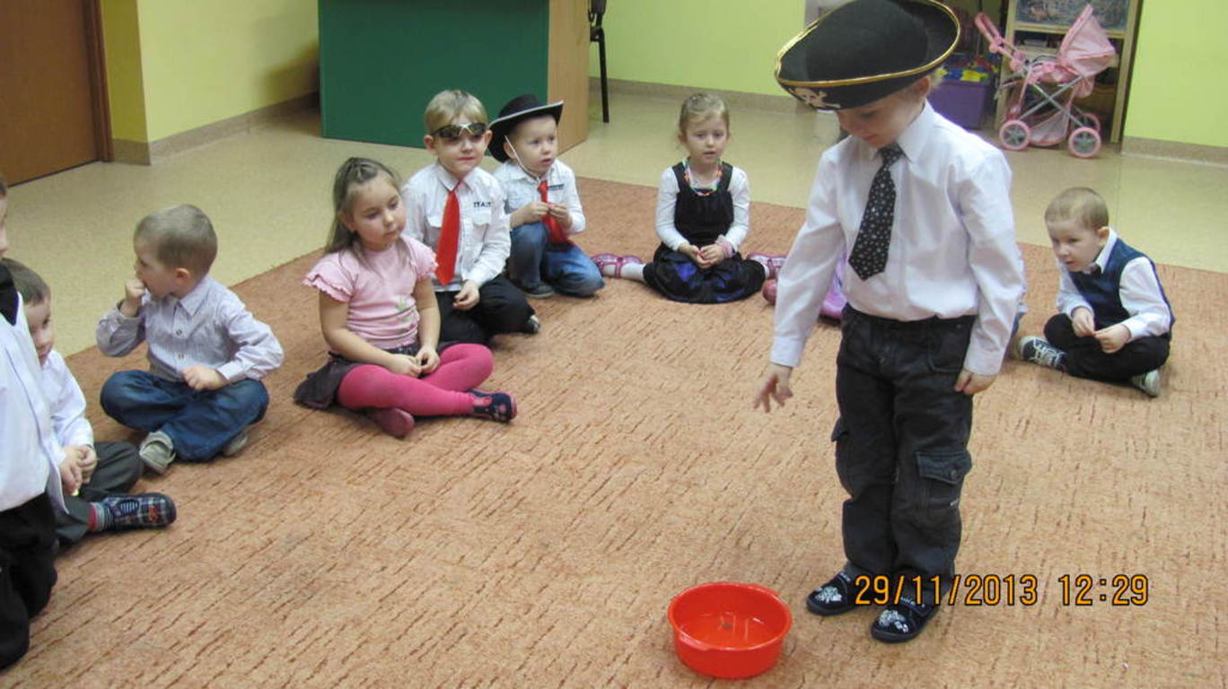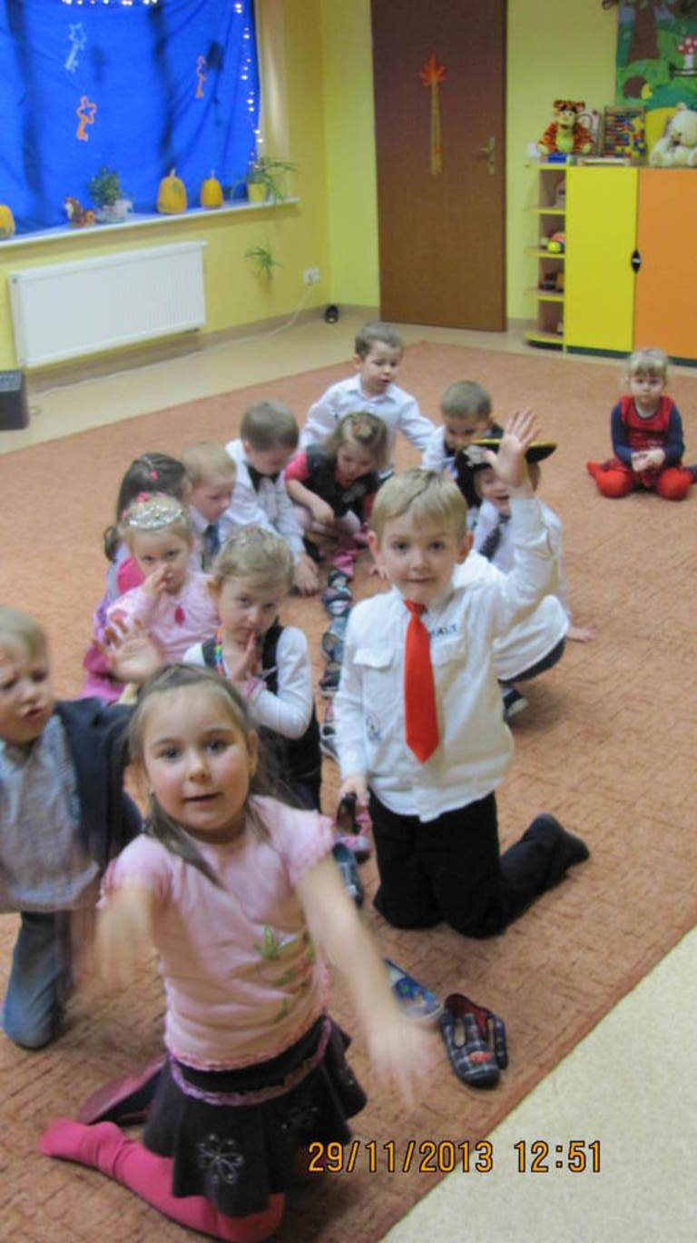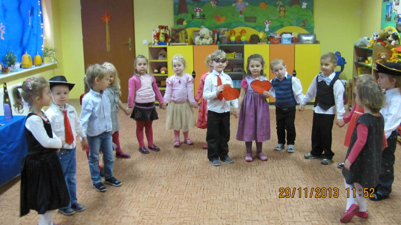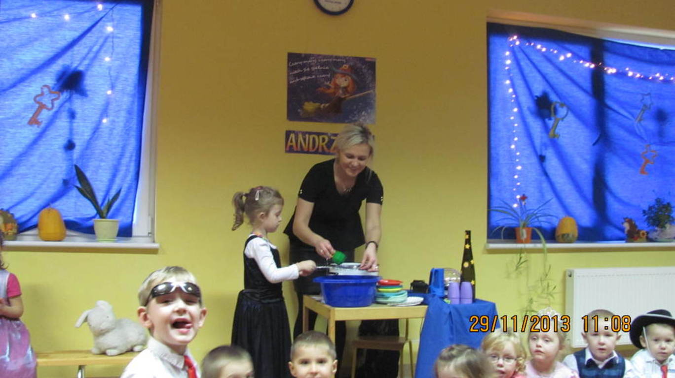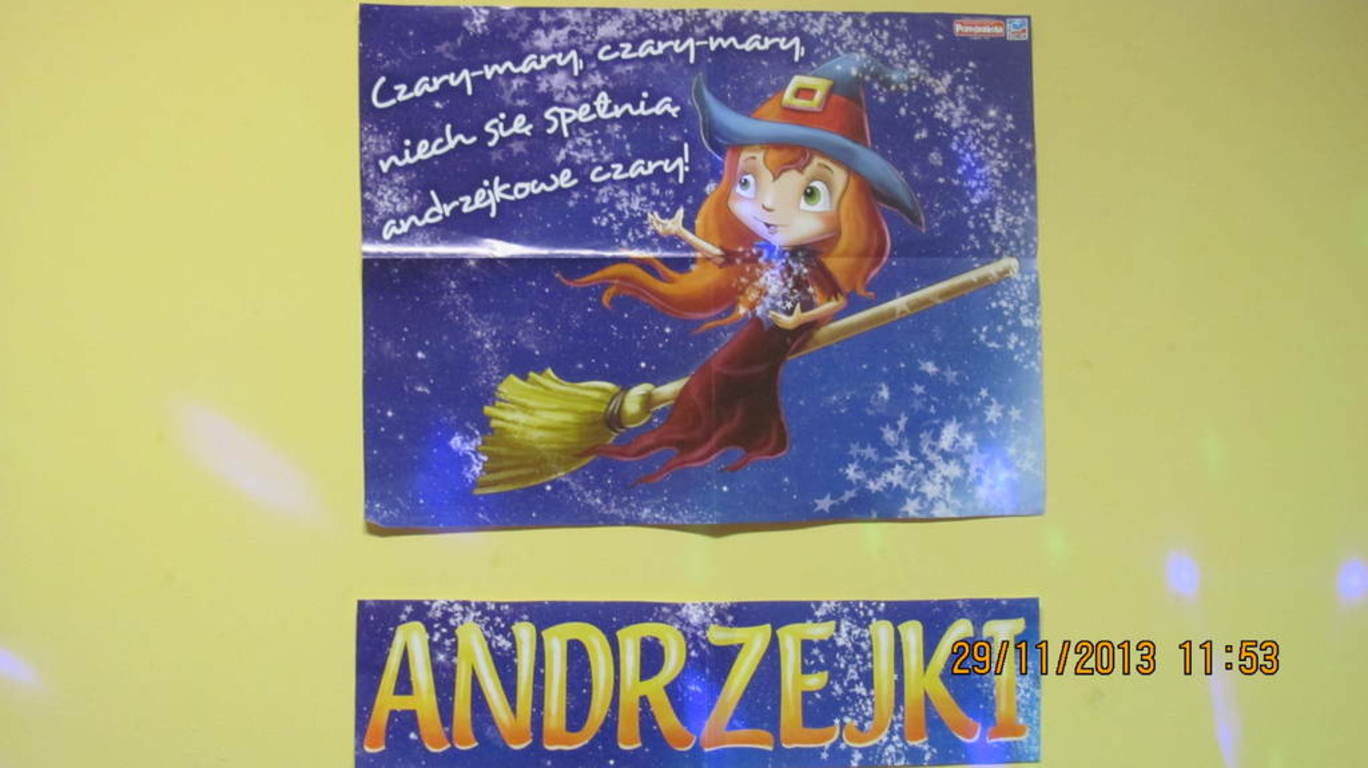 Aby zabawa Andrzejkowa owiana była magią i tajemnicą uroczystość w grupie 3,4-latki zaczęła się w przyciemnionej sali. Na początku dzieci zapoznały się z historią KRÓLIKA ŚLIWECZKI. Następnie dzieci uczyły się andrzejkowego zaklęcia. Potem była już tylko zabawa, wróżby i słodki poczęstunek. W ten magiczny dzień, przedszkolaki dowiedzieć się mogli kim zostaną w przyszłości. Nie zabrakło układania butów do drzwi oraz przekuwania serca, na odwrocie którego wypisane były imiona płci przeciwnej. Było dużo śmiechu i zdziwienia, kiedy okazywało się, że dana osoba nie zna nikogo o wylosowanym imieniu. Odbyło się również tradycyjne lanie wosku, a także wróżba z monetami.