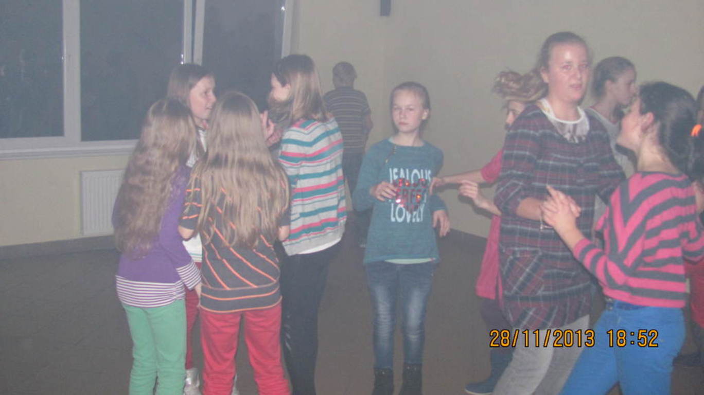 28 listopada w czwartek w naszej szkole odbyła się dyskoteka andrzejkowa dla uczniów klas I- VI. Od godziny 16. uczniowie najmłodszych klas, czyli I- III bawili się w rytm znanych im piosenek, o których oprawę zadbał profesjonalny DJ. Następnie od godziny 17:30 DJ grał dla uczniów klas starszych, czyli IV- VI. Dzięki uprzejmości Rady Rodziców, dzieci mogły skosztować różnego rodzaju ciasteczek oraz ugasić pragnienie. Uczniowie mogli również zakupić pączki z wróżbą, których sprzedażą zajmował się Samorząd Szkolny. Ok. 20 wszyscy zmęczeni, ale z uśmiechami na twarzy rozeszli się do domu. Mamy nadzieję, że kolejna dyskoteka będzie równie udana!